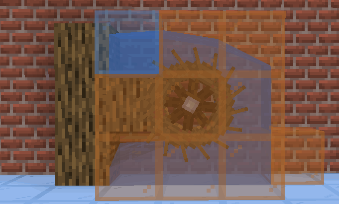 주의할 점은, 물 소스 블록 바로 아래에 블록을 설치해야 합니다. 해당 위치에 블록이 있느냐 없느냐에 따라 발전량은 2배의 차이가 발생합니다. 이 블록이 없으면 물이 회전 방향과 회전 반대방향으로 동시에 떨어져서, 발전량을 상쇄시키기 때문입니다.